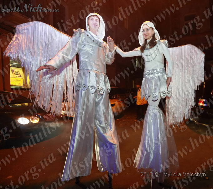 У наших виставах, і на парадах, і на будь-яких святкуваннях та заходах на ходулях працюють драматичні актори київських театрів. Це гарантія того, що наші ходулісти весело і невимушено розважають, танцюють і спілкуються з глядачами, а не переминаються з ноги на ногу з кам'яним обличчям, підпираючи стелю. Плюс величезний вибір - у нас більш ніж 70 різноманітних яскравих костюмів і 10 танцювальних номерів на ходулях на всі випадки.